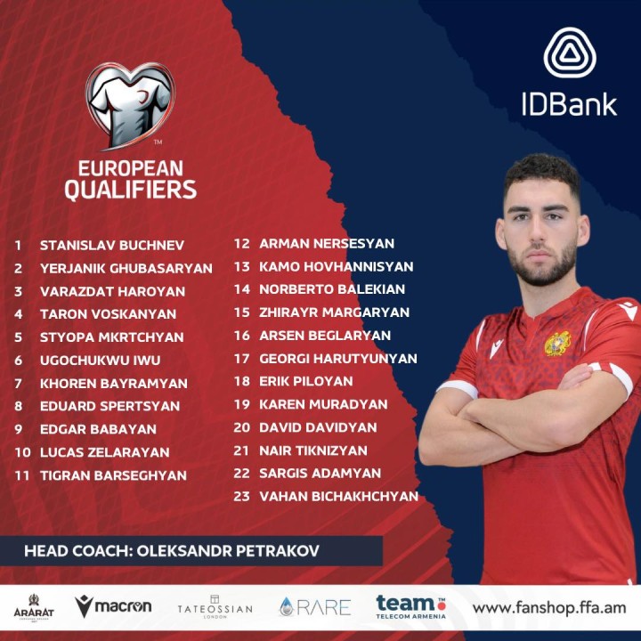 Ռոման Բերեզովսկին Հայաստանի ազգային հավաքականի հավաքին կմիանա այսօր երեկոյան: Արտակ Եդիգարյանը եւ Մաուրո Գեւգեոզյանը ազգային հավաքականին կմիանան մայիսի 25-ին Շվեյցարիայում: Վահագն Միլիտոսյանը կմասնակցի ազգային հավաքականի՝ միայն Շվեյցարիայում կայանալիք հավաքին՝ փորձարկման նպատակով: Ղազախստանի առաջնությամբ պայմանավորված` Ռոբերտ Արզումանյանը եւ Արթուր Եդիգարյանը ազգային հավաքականին կմիանան հունիսի 3-ին Գերմանիայում: Իրենց ակումբների այս ընթացքի ծրագրերով պայմանավորված`, ազգային հավաքականի մարզական հավաքին այս անգամ չեն միանա Արտյոմ Սիմոնյանը և Արմեն Համբարձումյանը: Հայաստանի ազգային հավաքականին Շվեյցարիայում ԱՄԷ-ի ազգային հավաքականի հետ հանդիպումից հետո կմիանա նաև Արթուր Պետրոսյանը, ով ընդգրկված է Հայաստանի ազգային հավաքականի մարզչական շտաբում: Հայտնում է ՀՖՖ պաշտոնական կայքը: