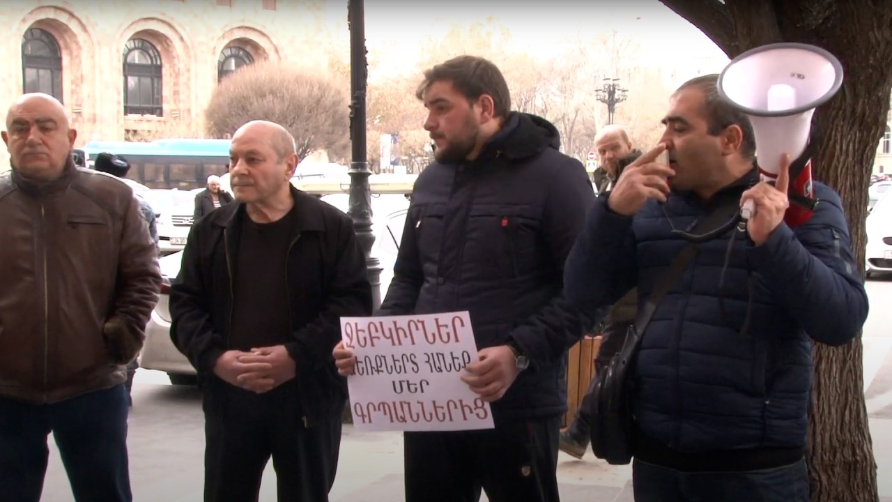 Կառավարության շենքի մոտ հավաքված մի խումբ քաղաքացիներ այսօր իրենց բողոքի ձայնը բարձրացրեցին ընդդեմ դրամի արժեզրկման եւ թանկացումների:
