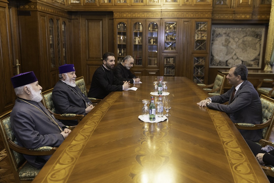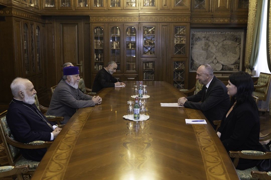 Հանդիպմանը ներկա էր նաև Աթոռ Սուրբ Էջմիածնի լուսարարապետ Գերաշնորհ Տ. Հովնան եպիսկոպոս Հակոբյանը: