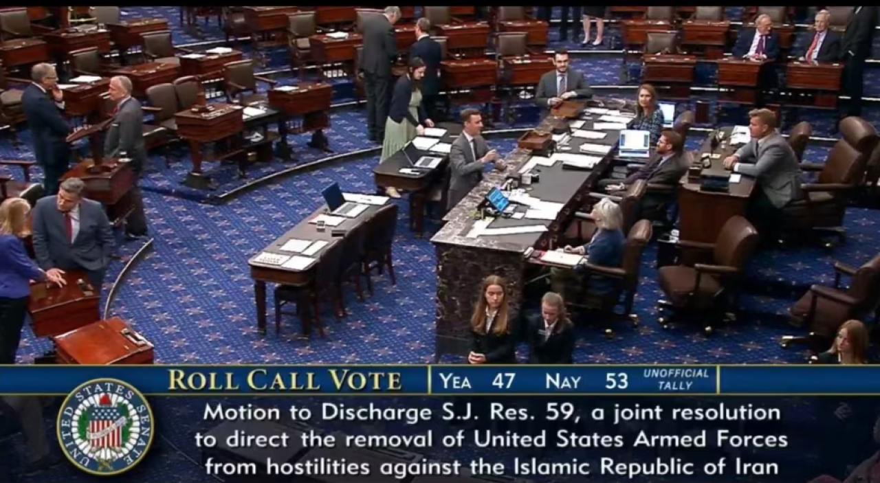 ԱՄՆ նախագահին առանց Կոնգրեսի թույլտվության Իրանին հարվածներ հասցնելն արգելելու մասին օրինագիծ է քվերակության դրվել Սենատում, սակայն չի հաստատվել. հայտնում է РБК-ն: