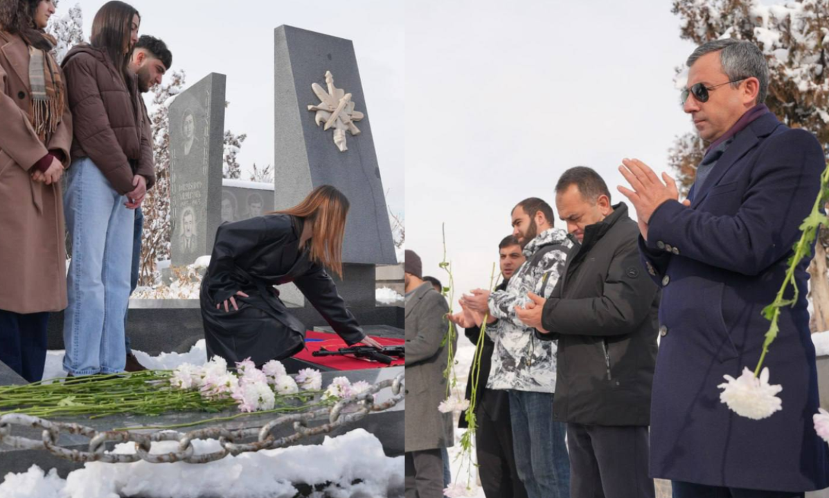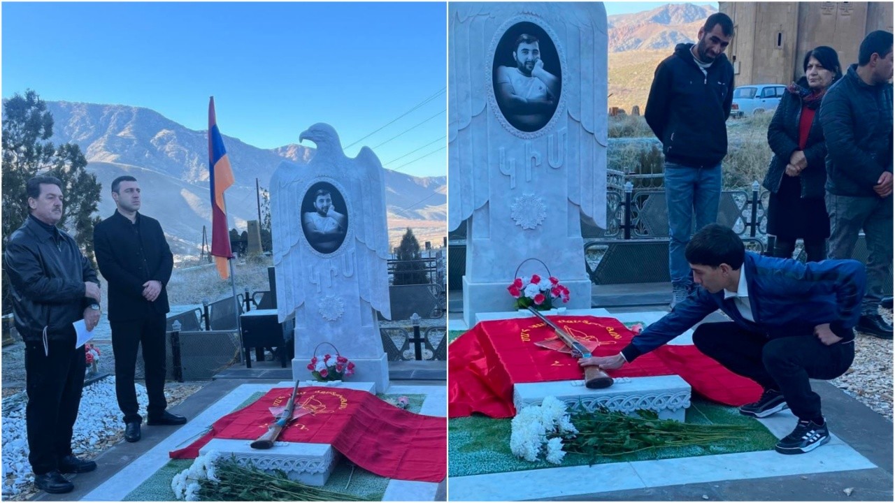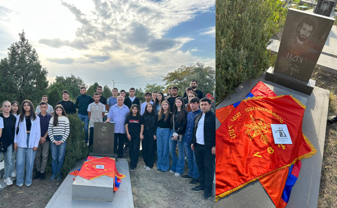 Դաշնակցականների երդման արարողություն Եռաբլուրում՝ պատերազմում զոհված Գեղամ Մուշեղյանի շիրիմին։