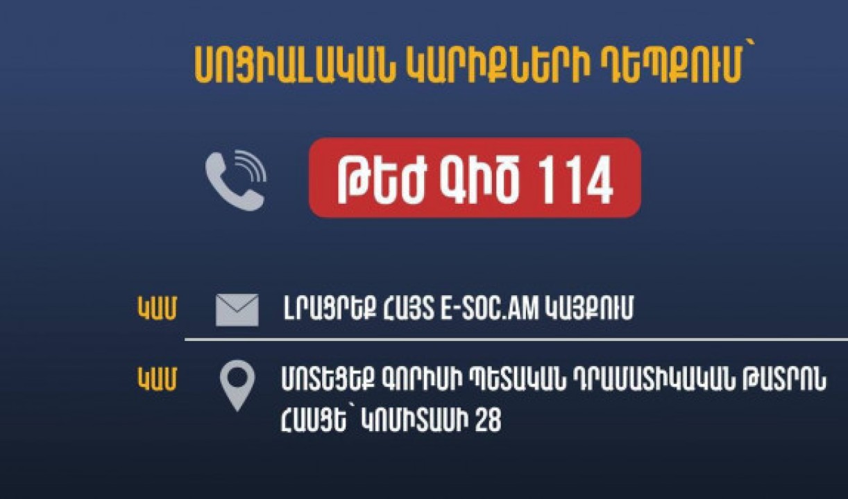 ՀՀ աշխատանքի և սոցիալական հարցերի նախարարությունը ստեղծել է հարթակ, որտեղ ներառել է բոլոր պետական սոցիալական ծառայությունները: Նոր գործարկված socservice.am կայքում այցելուները կարող են գտնել սոցիալական ծառայությունների հետ կապված ցանկացած տեղեկություն, առցանց նամակ գրել, դիմում ներկայացնել և այլն: Սոցիալական ապահովություն, աշխատանք և զբաղվածություն, բժշկասոցիալական փորձաքննություն, սոցիալական աջակցություն. այս բոլոր ուղղություններով ծառայությունների հետ կապված ամբողջ տեղեկությունը, մանրամասները հնարավոր է ստանալ մեկ պատուհանի սկզբունքով, մեկ տեղից: