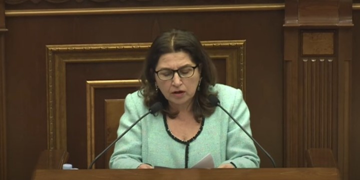 Հ2-ի «Խոսքի իրավունքի» հաղորդման տաղավարում Հայաստան դաշինքից առաջադրվող, ՀՅԴ անդամ Արմենուհի Կյուրեղյանն է: