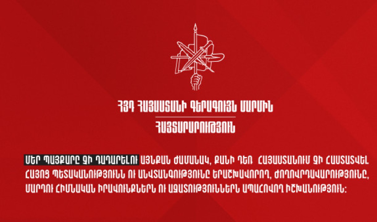 Ցանկացած դաշնակցականի նպատակը ազատ, անկախ և միացյալ Հայաստանի կերտումն է, երբ որ կհասնենք դրան, նոր մեր պայքարը կդադարի՝ ըստ Yerkir.am-ի ասաց ՀՅԴ Հայաստանի ԳՄ անդամ Արգիշտի Գևորգյանը ՀՅԴ Հայաստանի 24-րդ Գերագույն ժողովից հետո կազմակերպած մամուլի ասուլիսի ժամանակ՝ պատասխանելով հարցին, թե մինչև երբ է պայքարելու Դաշնակցության երիտասարդական կառույցը։