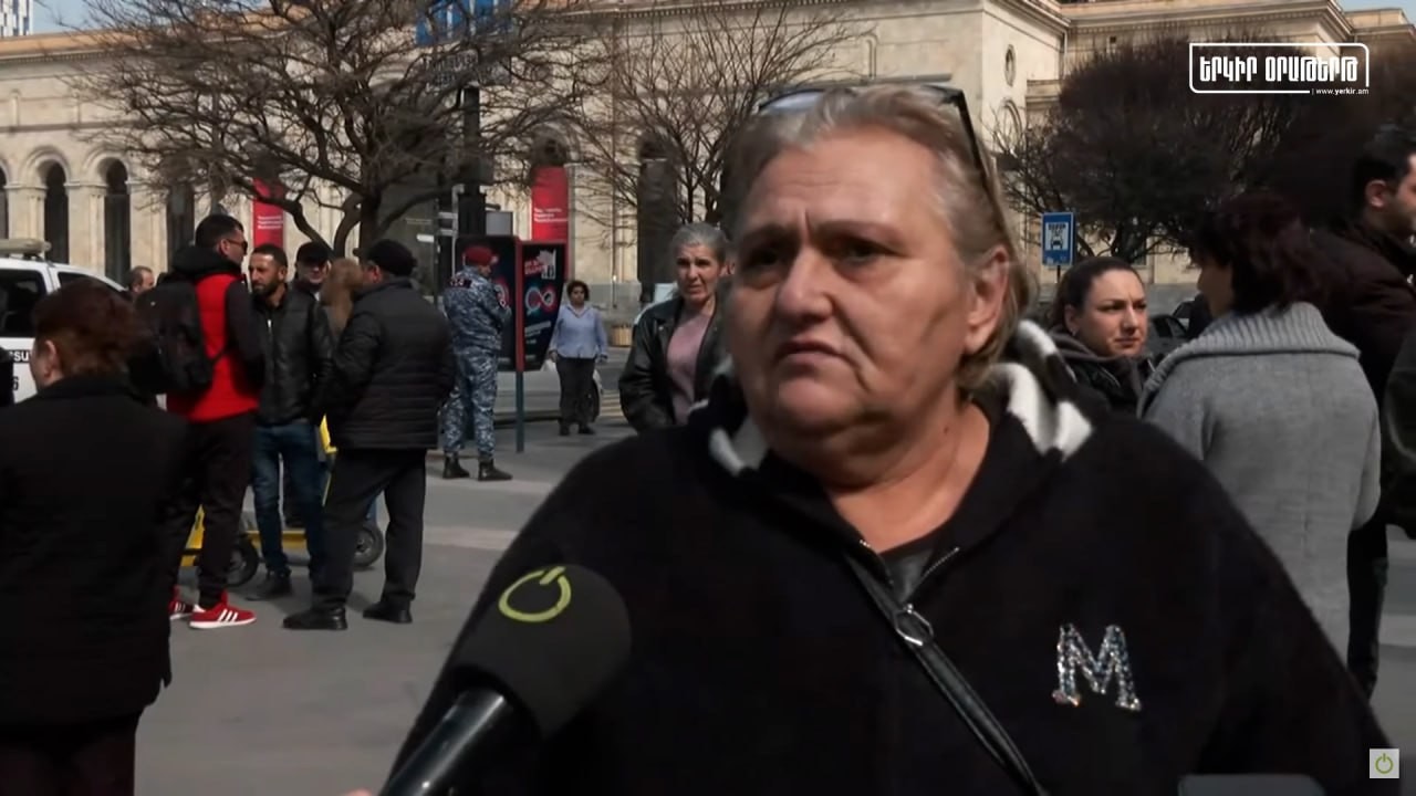 «Ամեն ինչ կորցրել ենք։ Հեռուստացույցը միացնում էինք, Արծրուն Հովհաննիսյանն ասում էր՝ «հաղթելու ենք»։ Հիմա պարտվել ենք, չենք հաղթել, Արծրո՛ւն Հովհաննիսյան, արի՛, մեզ պատասխան տուր, մեր ունեցածը հետ բեր»,- Yerkir.am-ի հաղորդմամբ՝ այս մասին ասաց ակցիայի մասնակիցներից մեկը։
