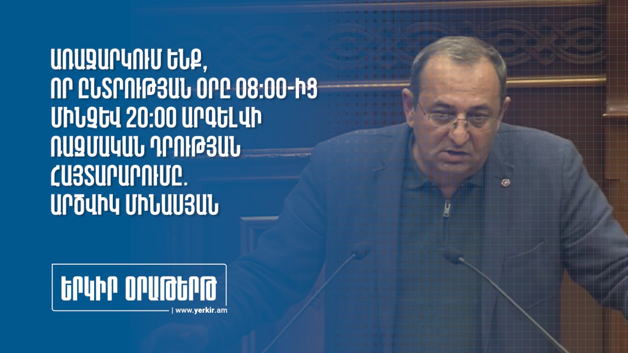 «Հայաստան» դաշինքի պատգամավոր Արծվիկ Մինասյանը, Ազգային ժողովում վարման կարգով ելույթ ունենալով, անդրադարձավ գերիներին և անհետ կորածների հարազատների բարձրացրած հարցերին։ Նա նշեց, որ բոլորը տեսել են գերիների, անհետ կորածների հարազատների վրդովմունքը։