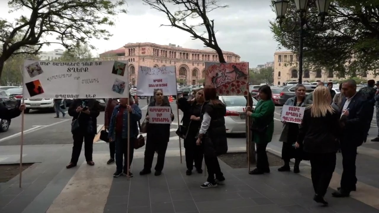 44-օրյա պատերազմում զոհված զինծառայողների հարազատների բողոքի ակցիան՝ ԲԴԽ-ի մոտ։