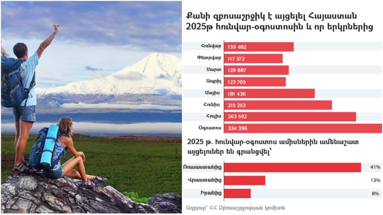 ՀՀ զբոսաշրջության կոմիտեն ներկայացրել է 2022 թվականի հունվար-դեկտեմբեր ամիսներին դեպի Հայաստան կատարված զբոսաշրջային այցելությունները: