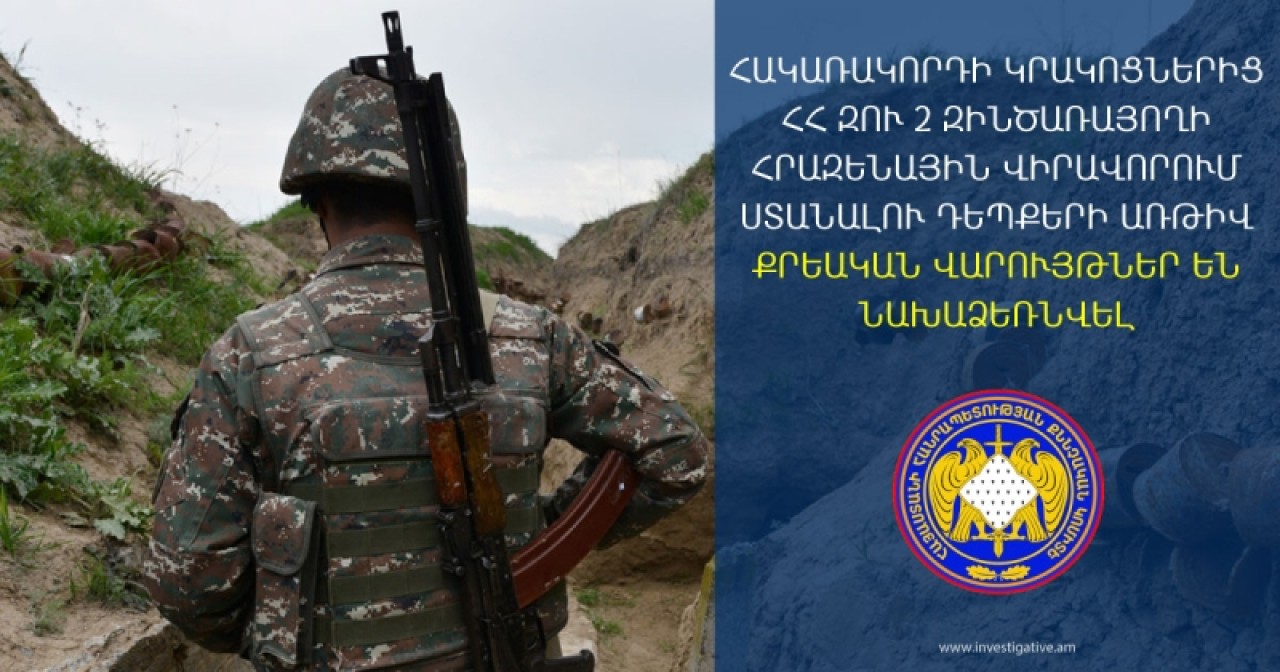 ՀՀ քննչական կոմիտեի զինվորական քննչական գլխավոր վարչության իններորդ կայազորային քննչական բաժնում իրականացվում են անհրաժեշտ միջոցառումներ՝ զինծառայող Ա.Ա-ի հրազենային վիրավորում ստանալու դեպքի հանգամանքները պարզելու ուղղությամբ, հայտնում են ՀՀ քննչական կոմիտեից։