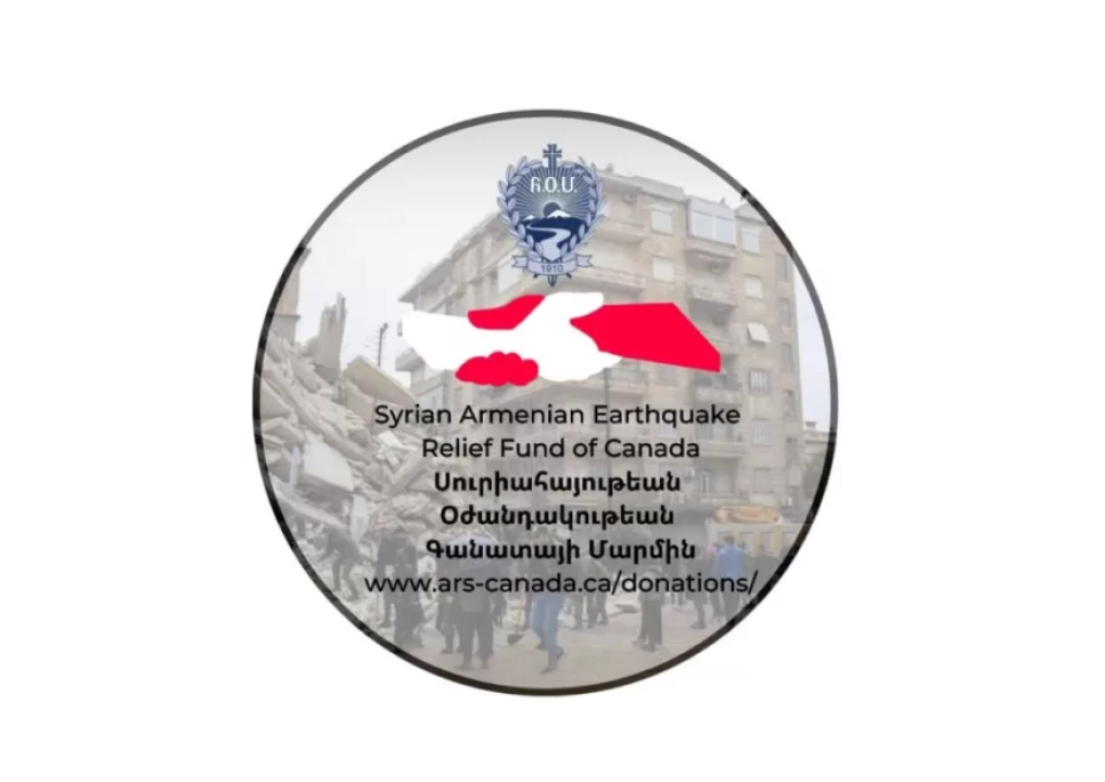 Գանատայի Հայ Օգնութեան Միութիւնը, ՀՅԴ Գանատայի Կեդրոնական Կոմիտէի Սուրիահայութեան Օժանդակութեան Յանձնախումբին եւ մեր ուղեկից կազմակերպութիւններուն հետ համատեղուած ճիգերով, իր աջակցութիւնը պիտի բերէ երկրաշարժէն տուժած սուրիահայ գաղութի զաւակներուն։