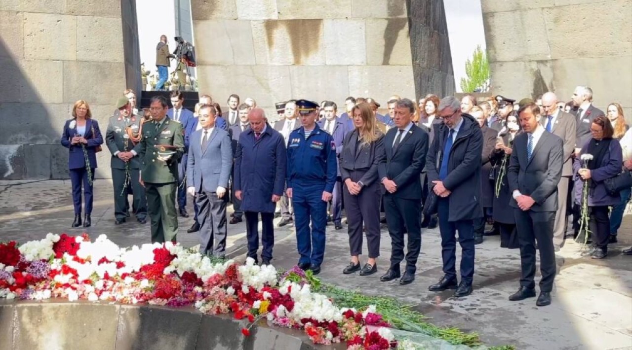 Խաչքարին ծաղիկների զետեղման արարողությանը հաջորդել է տաճարում Ցեղասպանության զոհերի հիշատակին մատուցված հոգեհանգստյան կարգը։