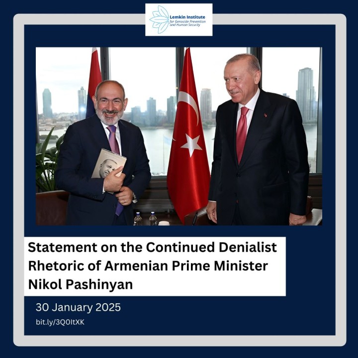 Լեմկինի անվան ցեղասպանության կանխարգելման ինստիտուտը ցանկանում է ևս մեկ անգամ պարզաբանել, որ Ադրբեջանին Արցախի շրջափակմանը նպաստող ցանկացած անձ և/կամ պետություն, լինի դա ուղղակիորեն օտարերկրյա օգնության միջոցով, թե անուղղակիորեն, հրաժարվելով օգտագործել իրենց տրամադրության տակ եղած բոլոր դիվանագիտական գործիքները, հանդիսանում է այդ ցեղասպանության մասնակից Արցախի Հանրապետության 120 000 քաղաքացիների և կարող է պատասխանատվության ենթարկվել դատարանում հանցակցության համար: Խստորեն անհրաժեշտ է, որ միջազգային առաջնորդները անհապաղ գործողություններ ձեռնարկեն Ադրբեջանի դեմ ՝ Արցախի Հանրապետությունում հետագա մահերը կանխելու համար»։