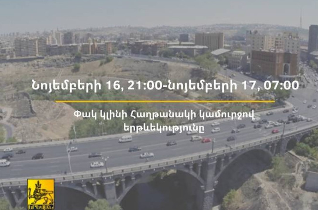 Գարեգին Նժդեհի ուղետարի վրա («Վստրեչի» կամուրջ) հրատապ ճանապարհաշինարարական աշխատանքների իրականացման նպատակով փետրվարի 13-ին՝ ժ.23:00-ից մինչև փետրվարի 14-ի ժ.07:00-ը, փակ կլինեն Ռոստովյան-Արցախ խաչմերուկից դեպի Գարեգին Նժդեհ-Սևան փողոցների խաչմերուկ ուղղության 1-ին և 2-րդ երթևեկելի գոտիները: