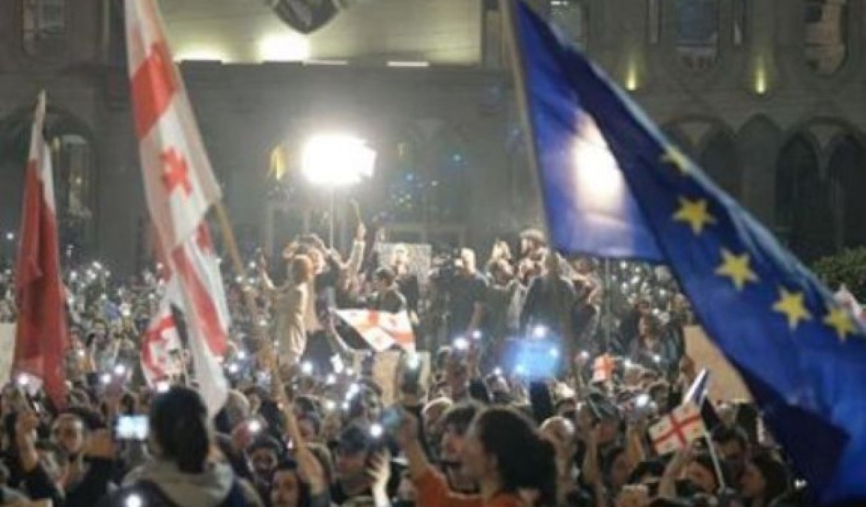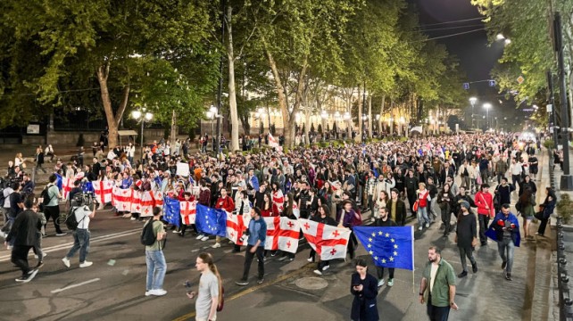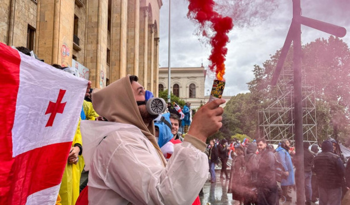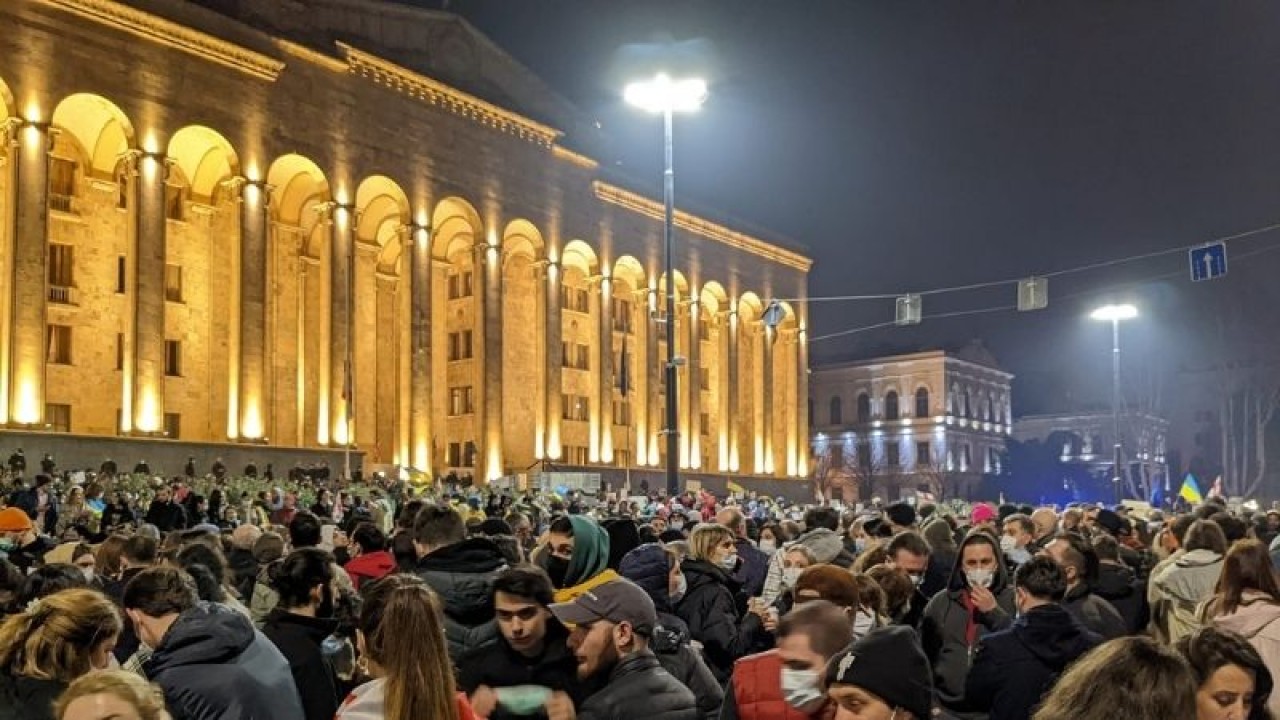 Ռուսթավելի պողոտայում, որտեղ գտնվում է խորհրդարանը, տեղադրվել է բեմ, որի վրա ելույթ կունենան բանախոսները և հանդես կգան քաղաքական հայտարարություններով։ Մարդիկ կանգնած են դրոշներով և պաստառներով։ Նրանք հերթական անգամ բողոքում են քննարկվող օրենքի դեմ։ Ռուսթավելի պողոտան արգելափակված է։