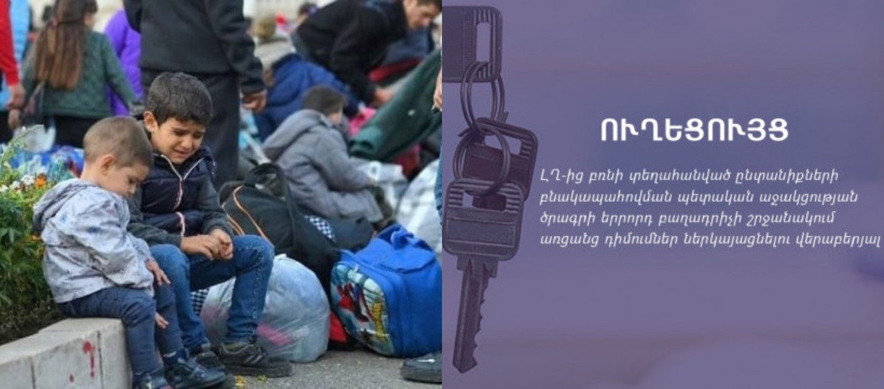 Ինչպես տեղեկացրել ենք՝ հուլիսի 15-ից մեկնարկել է ԼՂ-ից բռնի տեղահանված ընտանիքների բնակարանային ապահովման պետական աջակցության ծրագրի երկրորդ բաղադրիչի շրջանակում դիմումների ընդունման գործընթացը։ Այս մասին հայտնում է  ՀՀ ԱՍՀՆ տեղեկատվության  հետ բաժինը։