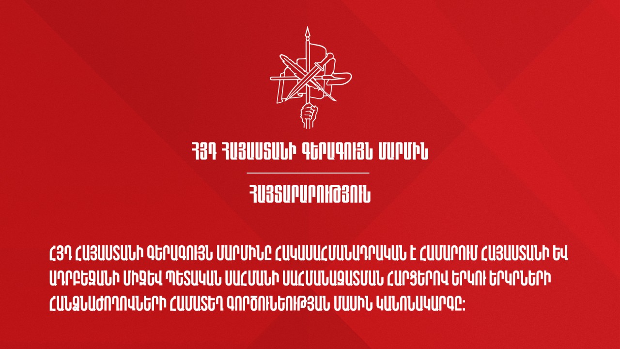 «Հայաստանի Հանրապետության և Ադրբեջանի Հանրապետության միջև պետական սահմանի սահմանազատման և սահմանային անվտանգության հարցերով հանձնաժողովի և Ադրբեջանի Հանրապետության և Հայաստանի Հանրապետության միջև պետական սահմանի սահմանազատման պետական հանձնաժողովի համատեղ գործունեության մասին» կանոնկարգը հակասում է ՀՀ պետական, ազգային շահերին և ենթակա չէ վավերացման։ Այս մասին հայտարարություն է տարածել «Սրբազան պայքար»-ի համակարգող մարմինը։