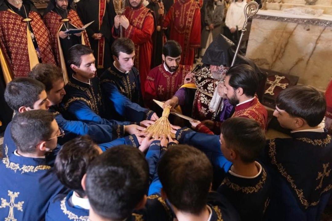 Արարողությունը բացվեց Տերունական աղոթքով, ապա ներկաներին ողջունեց Մայր Աթոռի Դիվանատան Ներեկեղեցական հարաբերությունների գրասենյակի տնօրեն Արժանապատիվ Տ. Պարույր ավագ քահանա Ավետիսյանը: