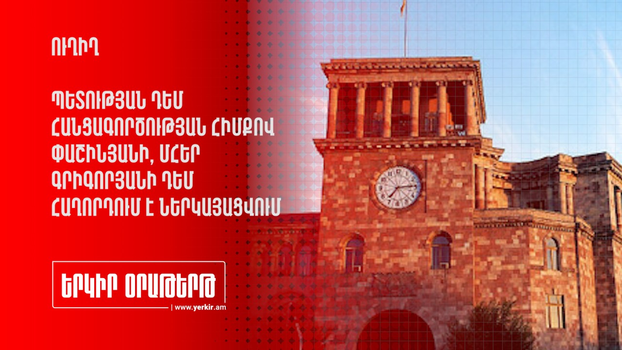 «Միասին» այլընտրանքային հասարակական-քաղաքական շարժումը, փաստաթղթային հիմնավորումներով պայմանավորված, հաղորդում է ներկայացնելու ՀՀ Գլխավոր դատախազությանը և Քննչական Կոմիտեին՝ ՀՀ վարչապետ Նիկոլ Փաշինյանի և փոխվարչապետ Մհեր Գրիգորյանի նկատմամբ ՀՀ Քր.Օրենսգրքի 299 հոդվածով քրեական վարույթ հարուցելու պահանջով: Ըստ այդմ՝ մենք առերևույթ հիմնավոր կասկածներ ունենք արձանագրելու, որ պետության բարձրագույն այս երկու ներկայացուցիչների գործողությունները Հայաստան-Ադրբեջան սահմանազատում-սահմանագծման գործընթացում համապատասխանում են ՀՀ Քր․Օր․-ի Բաժին 11-ի՝ Պետական իշխանության դեմ ուղղված հանցագործություններ, գլուխ 28-ի՝ «Սահմանադրական կարգի հիմունքների և պետության անվտանգության դեմ ուղղված հանցագործությունները», 299 հոդվածի 1-ին կետի պարունակած հանցակազմին։