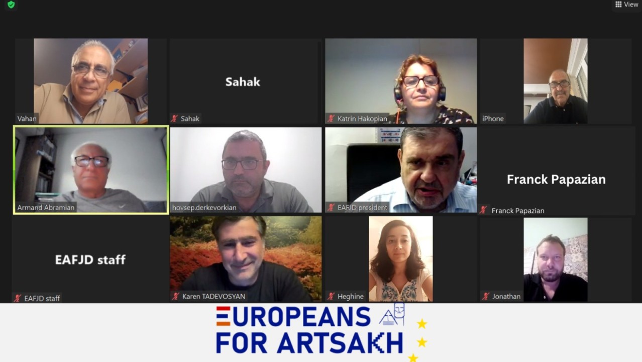 «Եվրոպացիները հանուն Արցախի» հարթակը նոյեմբերի 21-ին գումարել է առցանց հանդիպում՝ Անգլիայի, Գերմանիայի, Կիպրոսի, Նիդերլանդների, Չեխիայի, Բելգիայի, Շվեյցարիայի, Շվեդիայի, Դանիայի, Բուլղարիայի և Ֆրանսիայի հայ համայնքների ներկայաուցչական մարմինների պատասխանատուների և ՀՅԴ Հայ դատի Եվրոպայի գրասենյակի անձնակազմի մասնակցությամբ։ Հարգելի պատճառներով հանդիպմանը չեն մասնակցել Հունաստանի, Ռումինիայի և Պորտուգալիայի ներկայացուցիչները։ Քննարկմանը մասնակցել են նաև Արցախի Հանրապետության Ազգային Ժողովի կողմից ստեղծված Արցախի ժողովրդի հիմնարար իրավունքների պաշտպանության հանձնախմբի համակարգող, ՀՀ նախկին արտգործնախարար Վարդան Օսկանյանը և հանձնախմբի անդամ Արմինե Ալեքսանյանը։