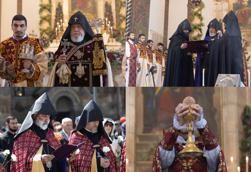 Հայկական ծիսակարգով կազմակերպված պատարագը մատուցվել է Հայ կաթողիկե եկեղեցու Ֆրանսիայի թեմի առաջնորդ Գերապայծառ Եղյա եպիսկոպոս Եղիայանի նախագահությամբ՝ Հայ առաքելական եկեղեցու Ֆրանսիայի թեմի առաջնորդ Գերաշնորհ Տեր Գրիգոր եպիսկոպոս Խաչատրյանի, Ֆրանսիայի Հայ ավետարանչական եկեղեցու առաջնորդ Ժոել Միքայելյանի, Ֆրանսիայի կաթոլիկ եկեղեցու ներկայացուցիչ, Փարիզի քորեպիսկոպոս Էմանուել Տուայի, ինչպես նաև՝ քույր եկեղեցիների քահանաների մասնակցությամբ: