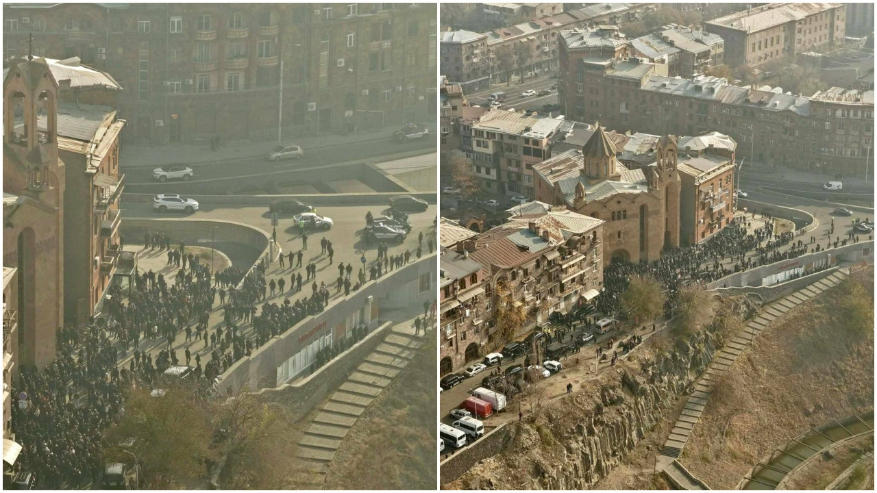 Նիկոլ Փաշինյանին դիմավորելու պահին դրոնով լուսանկար է արվել, որտեղ երեւում է, թե որքան մարդ է հավաքված եկեղեցու տարածքում։ Այս մասին հայտնում է «Արմատ մեդիա»-ն։