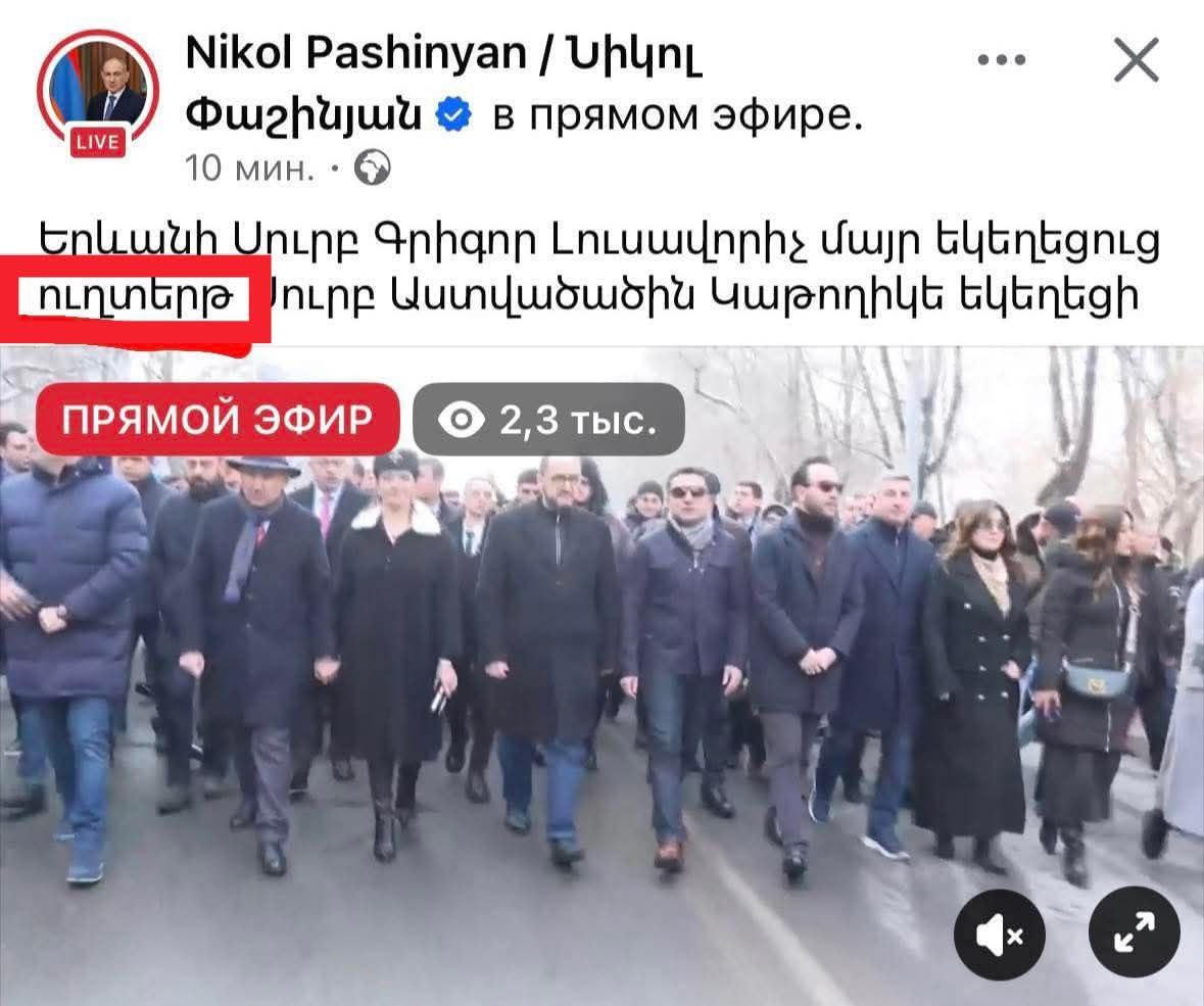 Yerkir.am-ն ուսումնասիրեց Նիկոլ Փաշինյանի ՖԲ էջի վերջին գրառման խմբագրված պատմությունը և պարզեց, որ սկզբում «ուղտերթ» է գրել, հետո՝ շտկել սխալը։
